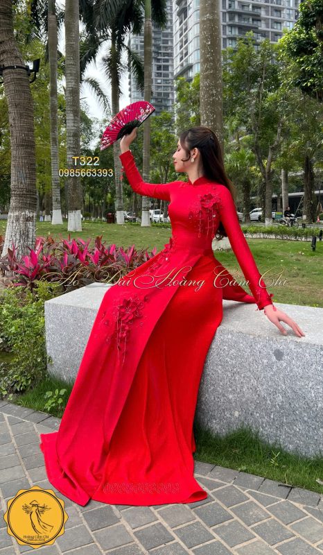 Đánh giá Áo dài thiết kế Thanh Vân đỏ mã T322 Hoàng Cẩm Chi