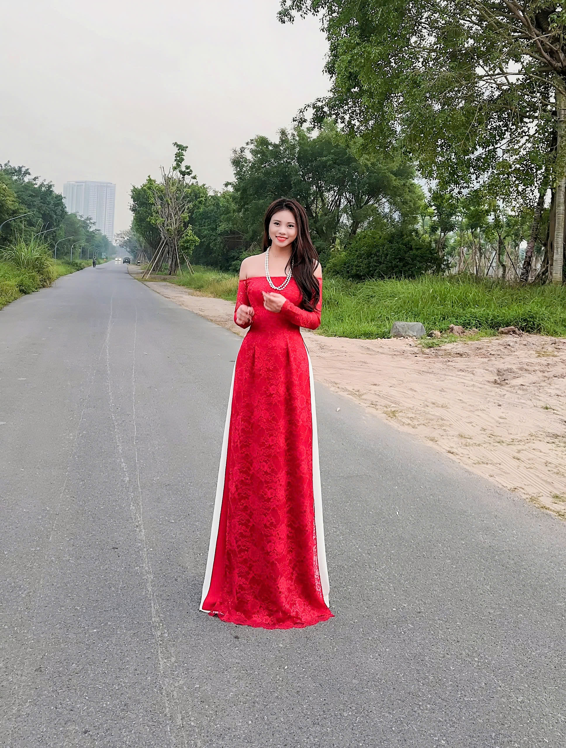 💋 TỰA ĐOÁ HỒNG KIÊU SA VỚI ÁO DÀI TRỄ VAI REN ĐỎ 💋