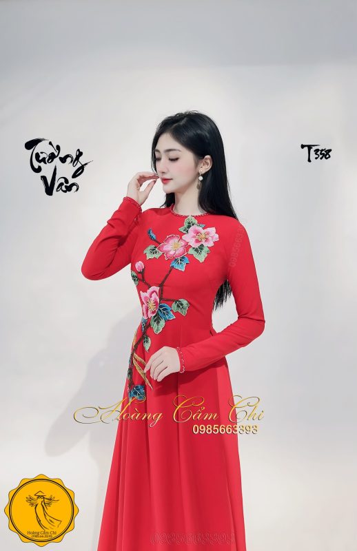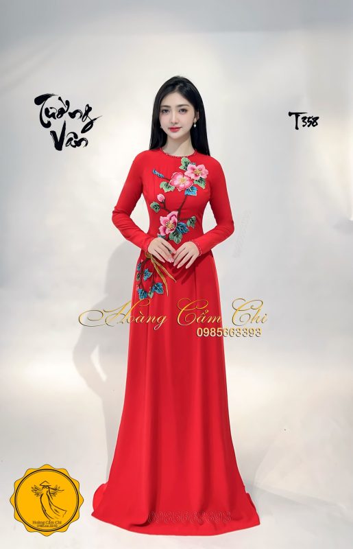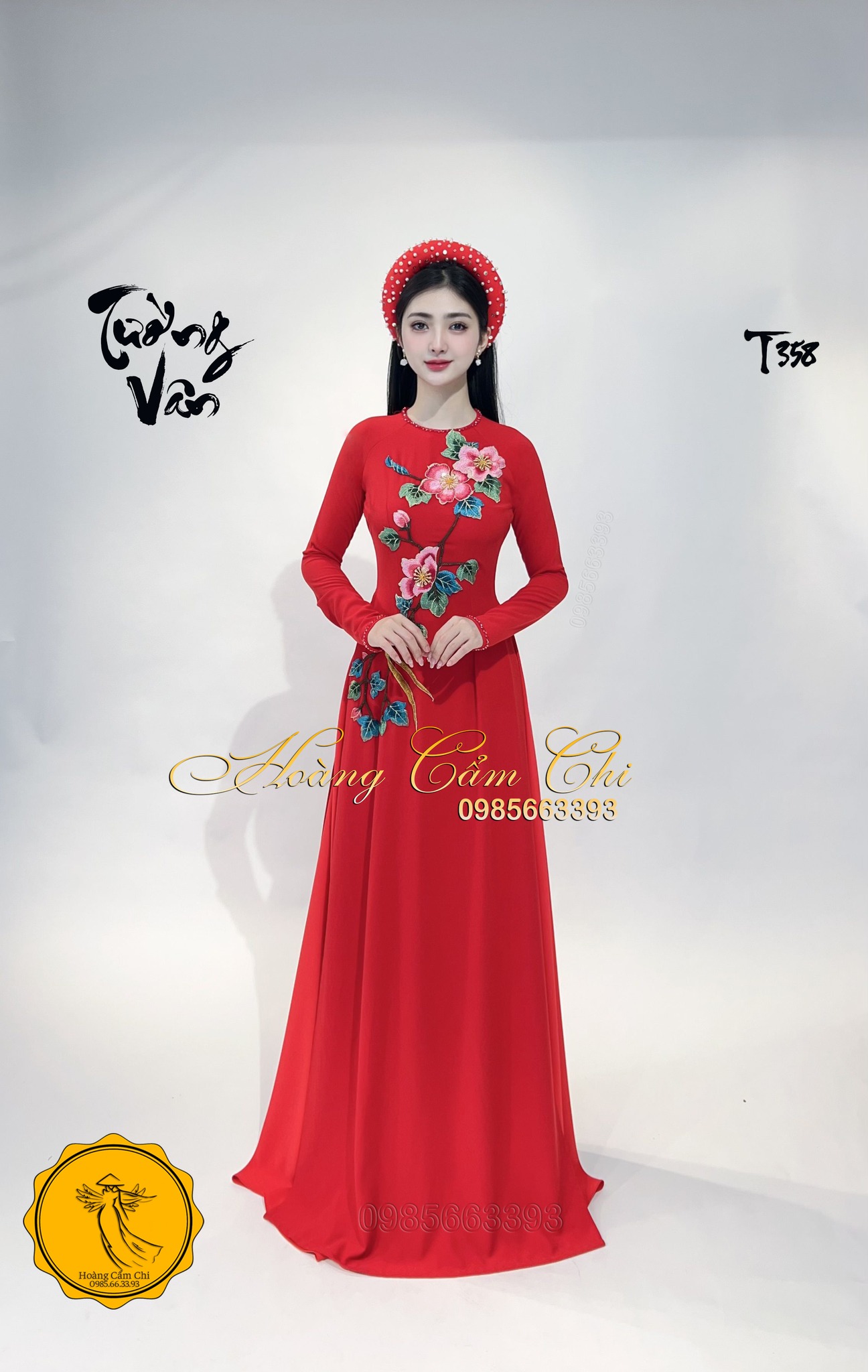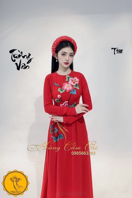 Tỏa sáng với mẫu áo dài đỏ nổi bật kết hợp họa tiết hoa đào thêu tay tinh xảo, áo dài T358 mang đến vẻ đẹp truyền thống đầy quyến rũ và thanh lịch. Chất liệu lụa cao cấp mềm mại, nhẹ nhàng ôm dáng, giúp tôn lên vóc dáng thon gọn và sự duyên dáng của người mặc.