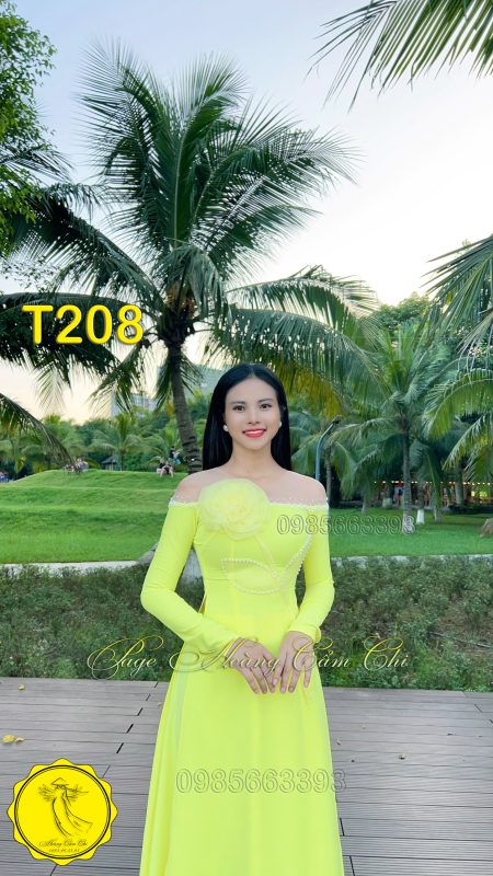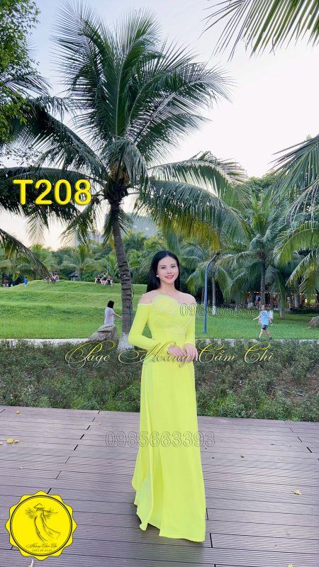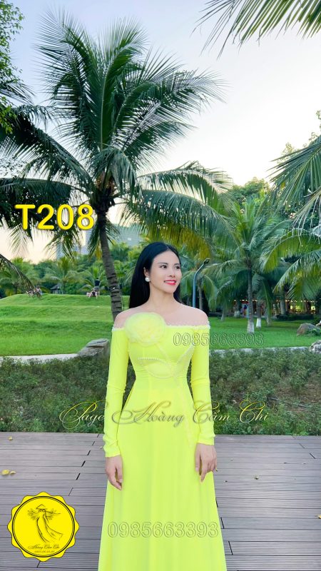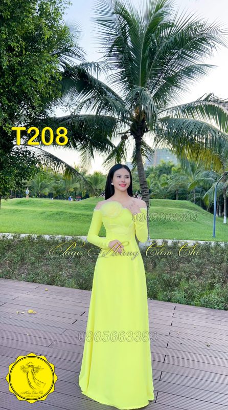 Đánh giá Áo dài thiết kế Vân Ca màu vàng chanh mã T208 Hoàng Cẩm Chi