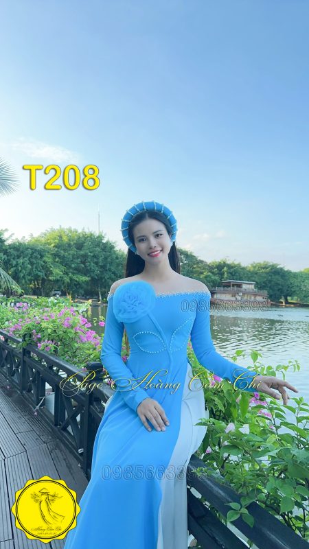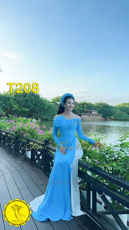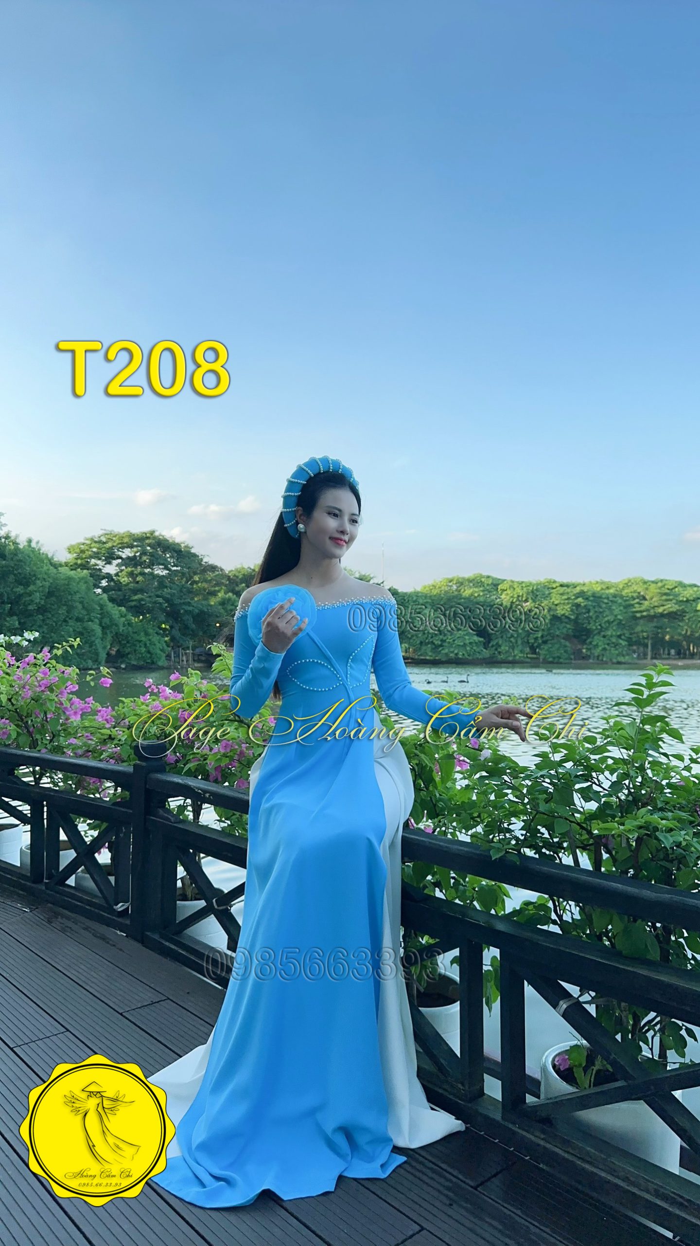 Đánh giá Áo dài thiết kế Vân Ca màu xanh trời mã T208 Hoàng Cẩm Chi