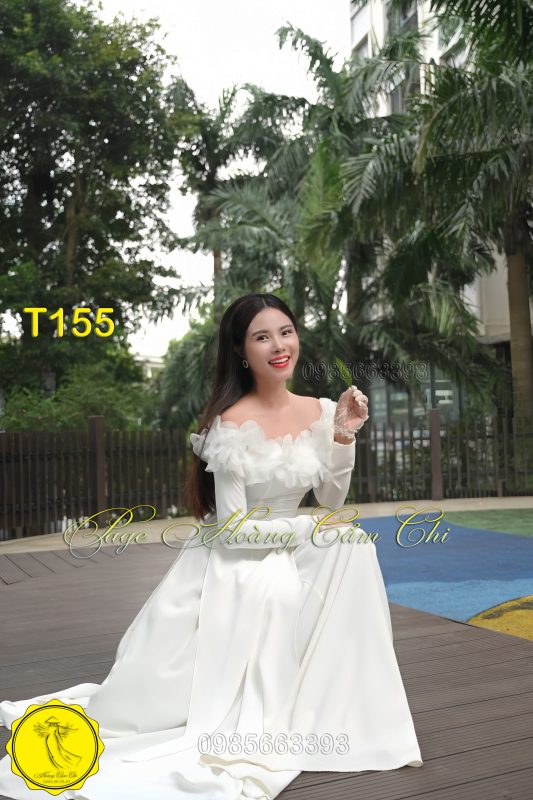 Vân Tuyết – mẫu áo dài cách điệu với thiết kế vai trễ và hoa nổi đầy duyên dáng, phù hợp cho mọi dịp đặc biệt.