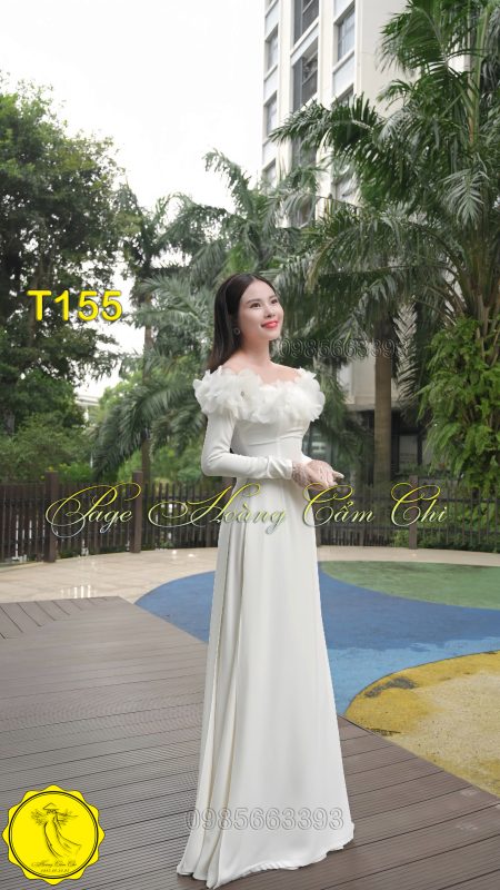 Đánh giá Áo dài thiết kế Vân Tuyết trắng mã T150 Hoàng Cẩm Chi